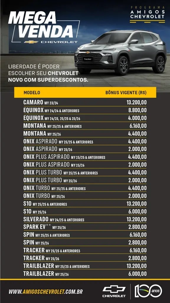 - CHEVROLET – Até R$ 12 mil de desconto na compra do seu carro zero
